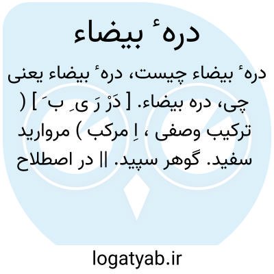 دره بیضاء. [ دَرْ رَ ی ِ ب َ ] ( ترکیب وصفی، اِ مرکب ) مروارید سفید. گوهر سپید. || در اصطلاح عرفانی، عقل اول، چنانکه آن را روح القدس و عرش مجید و لوح قضاو ام الکتاب و قلم اعلی و روح اعظم و ظل اول و عقاب هم نامند. ( از فرهنگ مصطلحات عرفا از تاریخ تصوف ص 645 ). و رجوع به درة البیضاء شود.