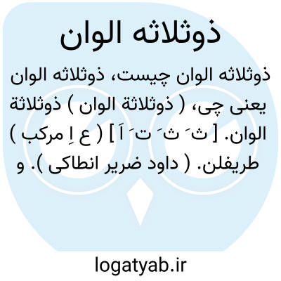 ( ذوثلاثة الوان ) ذوثلاثة الوان. [ ث َ ث َ ت َ اَ ] ( ع اِ مرکب ) طریفلن. ( داود ضریر انطاکی ). و ابن البیطار گوید: یقال علی الثبات المسمی بالیونانیة طریفیلیون و زعم ابن واقد انه الثربد ولیس به. ( ابن البیطار ). رجوع به ذوثلاث الوان شود.
