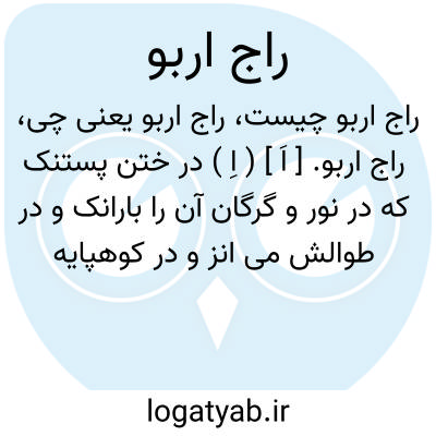 راج اربو. [ اَ ] ( اِ ) در ختن پستنک که در نور و گرگان آن را بارانک و در طوالش می انز و در کوهپایه گیلان راج اربو میخوانند. ( جنگل شناسی ص 233 ج 1 ).