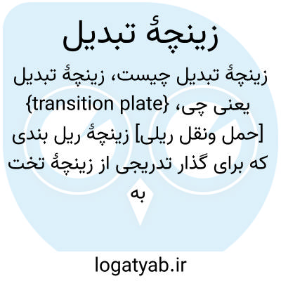{transition plate} [حمل ونقل ریلی] زینچۀ ریل بندی که برای گذار تدریجی از زینچۀ تخت به زینچۀ شیب دار و بر عکس در بین آنها قرار می گیرد