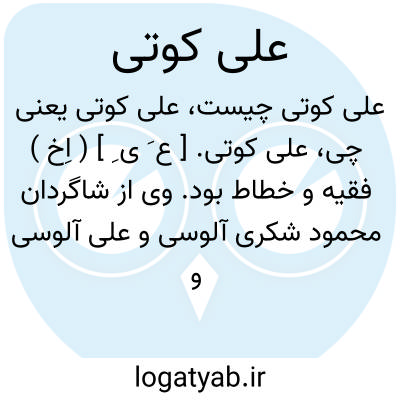 علی کوتی. [ ع َ ی ِ ] ( اِخ ) فقیه و خطاط بود. وی از شاگردان محمود شکری آلوسی و علی آلوسی و عبدالوهاب نائب بوده است. و عهده دارامامت در جامع اصفیه بود و در بعقوبة نیز مدتی به افتاء مشغول شد و در سال 1335 هَ. ق. در بغداد درگذشت و در مقبره غزالی دفن شد. ( از معجم المؤلفین ).