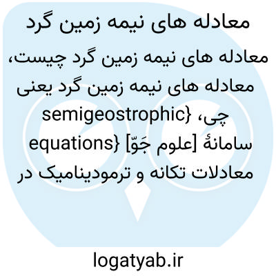 {semigeostrophic equations} [علوم جَوّ] سامانۀ معادلات تکانه و ترمودینامیک در مختصات زمین گَرد T ,Z ,Y ,X که از تقریب تکانۀ زمین گَرد مشتق شده است و نیازهای نظریۀ نیمه زمین گَرد را برآورده می سازد