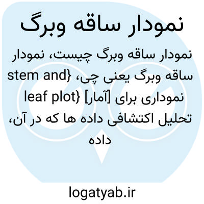 {stem and leaf plot} [آمار] نموداری برای تحلیل اکتشافی داده ها که در آن، داده ها به طور هم زمان براساس مقدارشان مرتب می شوند و شکل کلّی توزیع فراوانی زمینه ای داده ها نیز به نمایش درمی آید