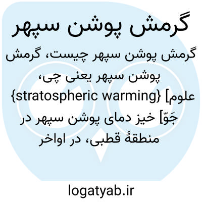 {stratospheric warming} [علوم جَوّ] خیز دمای پوشن سپهر در منطقۀ قطبی، در اواخر زمستان یا اوایل بهار، ناشی از انتشار تقویت یافتۀ انرژی گرمایی از وَردسپهر توسط امواج سیاره ای مقیاس که فروپاشی تاوۀ قطبی را در پی دارد متـ. گرمش ناگهانی پوشن سپهر stratospheirc sudden warming گ...