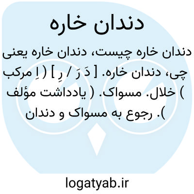 دندان خاره. [ دَ رَ / رِ ] ( اِ مرکب ) خلال. مسواک. ( یادداشت مؤلف ). رجوع به مسواک و دندان آپریز شود.
