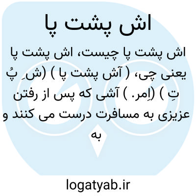 ( آش پشت پا ) (ش ِ پُ تِ ) (اِمر. ) آشی که پس از رفتن عزیزی به مسافرت درست می کنند و به فقرا می دهند.
