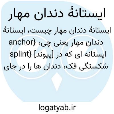 {anchor splint} [پیوند] ایستانه ای که در شکستگی فک، دندان ها را در جای خود نگه می دارد