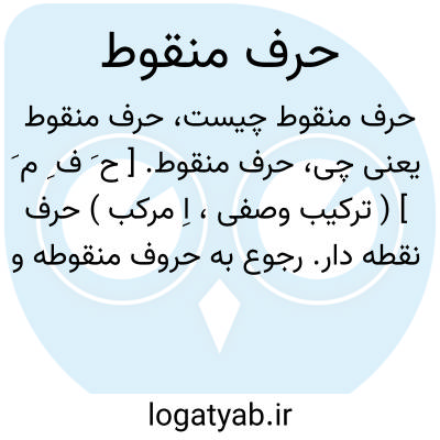 حرف منقوط. [ ح َ ف ِ م َ ] ( ترکیب وصفی، اِ مرکب ) حرف نقطه دار. رجوع به حروف منقوطه و حرف معجم شود.