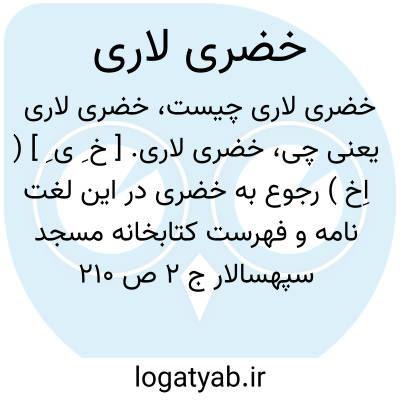 خضری لاری. [ خ ِ ی ِ ] ( اِخ ) رجوع به خضری در این لغت نامه و فهرست کتابخانه مسجد سپهسالار ج 2 ص 210 شود.