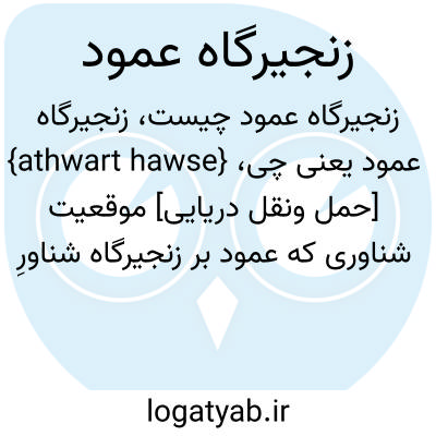 {athwart hawse} [حمل ونقل دریایی] موقعیت شناوری که عمود بر زنجیرگاه شناورِ‍ درلنگرِ دیگر قرار دارد