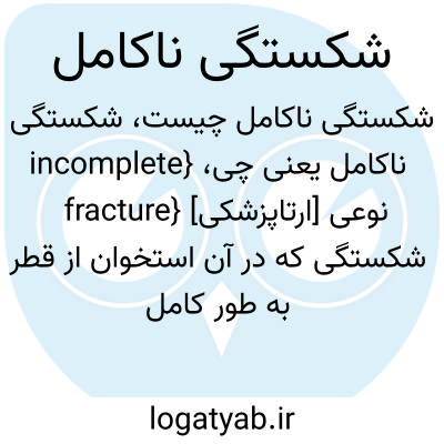 {incomplete fracture} [ارتاپزشکی] نوعی شکستگی که در آن استخوان از قطر به طور کامل نشکسته باشد