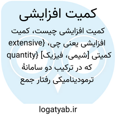 {extensive quantity} [شیمی، فیزیک] کمیتی که در ترکیب دو سامانۀ ترمودینامیکی رفتار جمع پذیر داشته باشد