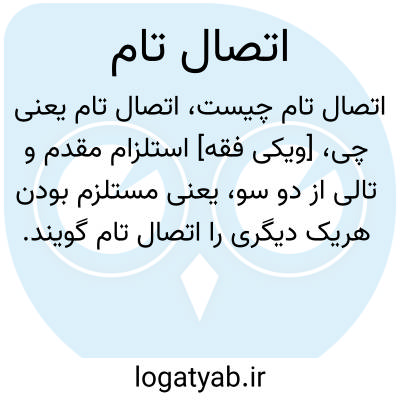 [ویکی فقه] استلزام مقدم و تالی از دو سو، یعنی مستلزم بودن هریک دیگری را اتصال تام گویند.