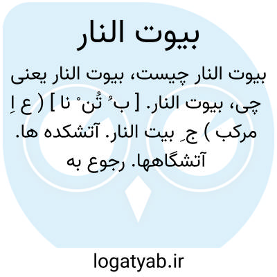 بیوت النار. [ ب ُ تُن ْ نا ] ( ع اِ مرکب ) ج ِ بیت النار. آتشکده ها. آتشگاهها. رجوع به بیت النار شود.
