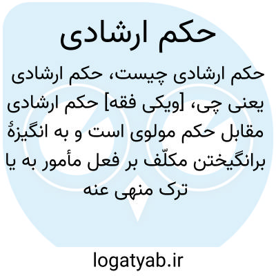 [ویکی فقه] حکم ارشادی مقابل حکم مولوی است و به انگیزۀ برانگیختن مکلّف بر فعل مأمور به یا ترک منهی عنه صادر نمی شود، بلکه به انگیزۀ صرف ارشاد و هدایت او به مصلحت موجود در مأمورٌ به یا مفسدۀ موجود در منهی عنه صادر می گردد