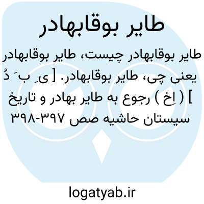 طایر بوقابهادر. [ ی ِ ب َ دُ ] ( اِخ ) رجوع به طایر بهادر و تاریخ سیستان حاشیه صص 397-398 شود.
