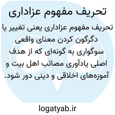 تحریف مفهوم عزاداری زمانی رخ می‌دهد که اهداف و مناسک این سنت دینی از مسیر اصلی خود خارج شود و بیشتر به شکلی ظاهری و هیجانی محدود شود. به جای تمرکز بر درس‌های اخلاقی و پیام‌های انسان‌ساز واقعه‌ی کربلا، گاهی مراسم تنها به نمایش احساسات شدید یا رقابت‌های ظاهری تبدیل می‌شود. این تحریف می‌تواند باعث شود که افراد از محتوای معنوی و تربیتی عزاداری غافل شده و صرفاً به جنبه‌های نمایشی یا اجتماعی آن توجه کنند.