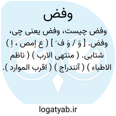 وفض. [ وَ / وَ ف َ ] ( ع اِمص، اِ ) شتابی. ( منتهی الارب ) ( ناظم الاطباء ) ( آنندراج ) ( اقرب الموارد ). عجله. ( اقرب الموارد ). ج، اوفاض. ( منتهی الارب ) ( آنندراج ) ( ناظم الاطباء ). رجوع به وفز شود. و اوفاض به معنی گروه مردم از هر جنس یا از هر قبایل درآمیخته نیز آمده. || ( مص ) دویدن و شتاب رفتن. ( آنندراج ) ( منتهی الارب ) ( ناظم الاطباء ) ( اقرب الموارد ).