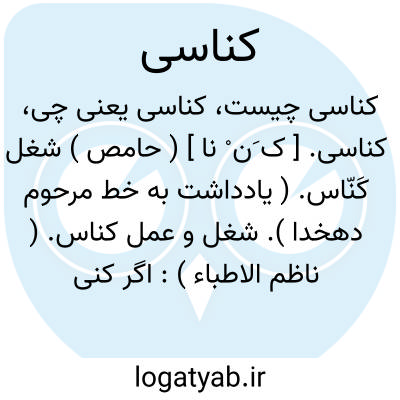 کناسی. [ ک ُ ] ( ص نسبی ) نسبت است به کناسة و گمان می کنم که محله ای باشد در کوفه که محل خرید و فروش چارپایان است. ( از الانساب سمعانی ). و رجوع به کناسة شود.