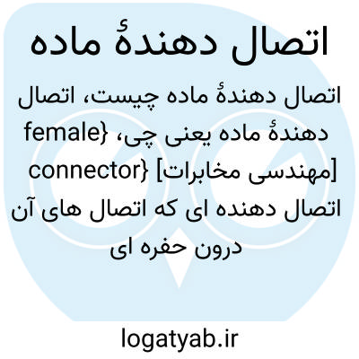 {female connector} [مهندسی مخابرات] اتصال دهنده ای که اتصال های آن درون حفره ای تعبیه شده است و اتصال دهندۀ نر به درون این حفره فرومی رود و اتصال هایشان به هم وصل می شود؛ هدف از این سازوکار، ایجاد اتصال الکتریکی محکم و مطلوب بین اتصال دهندۀ نر و ماده است