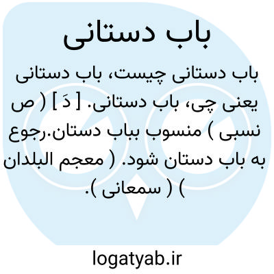 باب دستانی. [ دَ ] ( ص نسبی ) منسوب بباب دستان.رجوع به باب دستان شود. ( معجم البلدان ) ( سمعانی ).