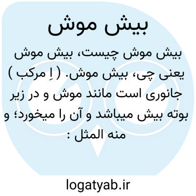 بیش موش. ( اِ مرکب ) جانوری است مانند موش و در زیر بوته بیش میباشد و آن را میخورد؛ و منه المثل: اعجب من فارةالبیش تتغذی بالسموم و تعیش. فارةالبیش. ( منتهی الارب ). گویند گوشت او تریاق بیش است یعنی دفع ضرر بیش میکند. ( برهان ). رجوع به مخزن الادویه و ترجمه صیدنه بیرونی و مفردات داود ضریر انطاکی ص 91 و تحفه حکیم مؤمن و بیش شود.