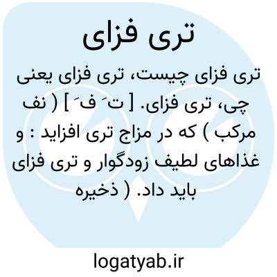 تری فزای. [ ت َ ف َ ] ( نف مرکب ) که در مزاج تری افزاید: و غذاهای لطیف زودگوار و تری فزای باید داد. ( ذخیره خوارزمشاهی ). و طعامهای تری فزای باید خورد چون شوربای گوشت بره و گوشت مرغ و مانند آن. ( ذخیره خوارزمشاهی ). و رجوع به تر و تری شود.