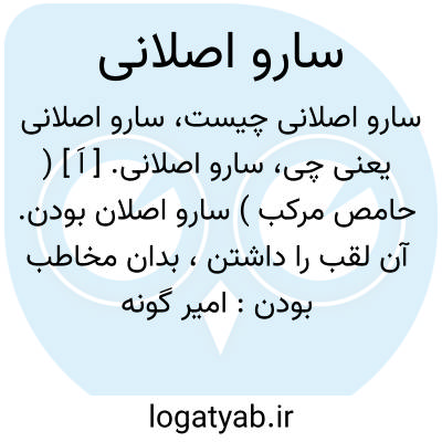 سارو اصلانی. [ اَ ] ( حامص مرکب ) سارو اصلان بودن. آن لقب را داشتن، بدان مخاطب بودن: امیر گونه خان در ازاء مردانگیها به خطاب سارو اصلانی معزز گشت. ( عالم آرا چ امیرکبیر ج 2 ص 910 ). بلقب سارو اصلانی معزز و سربلند گشت. ( همان کتاب ص 1041 ).