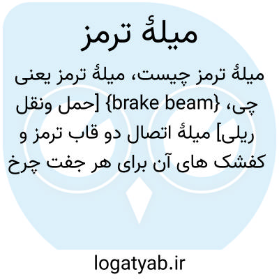 {brake beam} [حمل ونقل ریلی] میلۀ اتصال دو قاب ترمز و کفشک های آن برای هر جفت چرخ