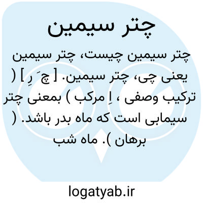چتر سیمین. [ چ َ رِ ] ( ترکیب وصفی، اِ مرکب ) بمعنی چتر سیمابی است که ماه بدر باشد. ( برهان ). ماه شب چهارده. ( ناظم الاطباء ). || کنایه از ماه باشد. ( انجمن آرا ). کنایه از ماه که ترجمه فخت است. ( آنندراج ). برای ماه استعمال کنند. ( از فرهنگ نظام ). || کنایه از ماهتاب که ترجمه فخت است. ( آنندراج ). رجوع به ماه و بدر و چتر سیمابی شود.