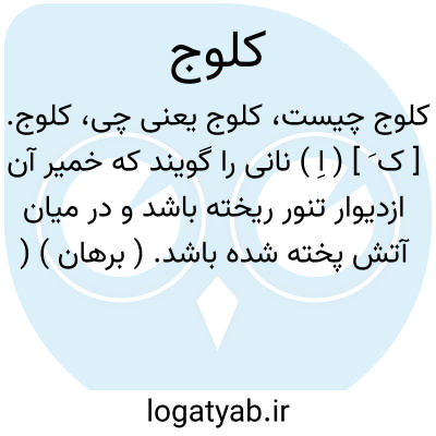 کلوج. [ ک َ ] ( اِ ) نانی را گویند که خمیر آن ازدیوار تنور ریخته باشد و در میان آتش پخته شده باشد. ( برهان ) ( ناظم الاطباء ) ( از فرهنگ فارسی معین ). کلوچ. ( السامی ). در بشرویه کلوک نواله نان را گویند که درست از کار درنیامده، در کردی، کولوک ( نان شیرینی بدون خمیرمایه ). ( از حاشیه برهان چ معین ). || ( ص ) دست و پایی را نیز گویند که انگشتان او را بریده باشند و یا سرما برده باشد. ( برهان ) ( از ناظم الاطباء ). ظاهراً مصحف کرخ. ( حاشیه برهان چ معین ).