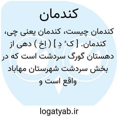 کندمان. [ ک ُ دِ ] ( اِخ ) دهی از دهستان گورگ سردشت است که در بخش سردشت شهرستان مهاباد واقع است و 251 تن سکنه دارد. ( از فرهنگ جغرافیایی ایران ج 4 ).
