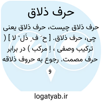حرف ذلاق. [ ح َ ف ِ ذَل ْ لا ] ( ترکیب وصفی، اِ مرکب ) در برابر حرف مصمت. رجوع به حروف ذلاقه و ذلقیه شود.