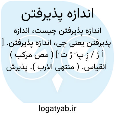 اندازه پذیرفتن. [ اَ زَ / زِ پ َ رُ ت َ] ( مص مرکب ) انقیاس. ( منتهی الارب ). پذیرش اندازه.