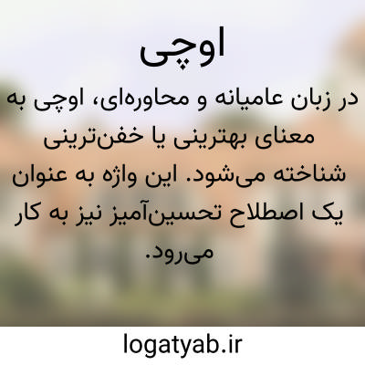 در زبان عامیانه و محاورهای، اوچی به معنای بهترینی یا خفنترینی شناخته میشود. این واژه به عنوان یک اصطلاح تحسینآمیز نیز به کار میرود و میتواند به معنای ایول یا باریکلا تعبیر شود.