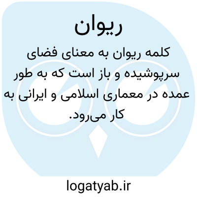 کلمه ریوان به معنای فضای سرپوشیده و باز است که به طور عمده در معماری اسلامی و ایرانی به کار می‌رود. این کلمه به نوعی نماد هویت فرهنگی و معماری کشور ما محسوب می‌شود. ریوان‌ها به عنوان نقاط تجمع و گفتگو در بناهای مختلف، از جمله مساجد، کاخ‌ها و باغ‌ها، طراحی شده‌اند. این فضاها معمولاً با طاق‌ها و ستون‌های زیبا و تزئینات هنری آراسته می‌شوند و به برقراری ارتباط با طبیعت و محیط اطراف کمک می‌کنند. از نظر اجتماعی، این محل مکانی برای تعاملات اجتماعی و فرهنگی بوده و محلی برای گردهمایی مردم در زمان‌های مختلف به شمار می‌روند. استفاده از آن در معماری نشان‌دهنده توجه به جزئیات و احترام به زیبایی‌شناسی در طراحی فضاها است. در نهایت، این کلمه نه تنها به یک نوع معماری اشاره دارد، بلکه نشان‌دهنده ارزش‌ها و فرهنگ غنی ایرانی نیز می‌باشد.