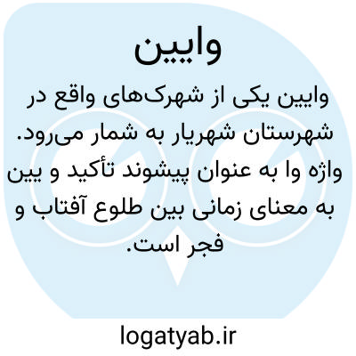 وایین یکی از شهرکهای واقع در شهرستان شهریار به شمار میرود. واژه وا به عنوان پیشوند تأکید و یین به معنای زمانی بین طلوع آفتاب و فجر است. در واقع، این نام به معنای پگاه راستین یا صبح صادق تعبیر میشود. این نامگذاری به خوبی نشاندهنده روشنایی و روشنی صبحهای این منطقه است و به نوعی به اهمیت زمان صبحگاه در زندگی انسانها اشاره دارد. این واژه با ویژگیهای جغرافیایی و فرهنگی خاص خود، از نظر اجتماعی و اقتصادی نیز جایگاه ویژهای در شهرستان شهریار دارد و میتواند به عنوان نمادی از زندگی روزمره و آغازهای نوین در نظر گرفته شود.
