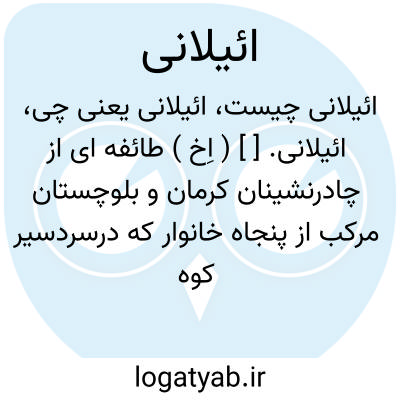ائیلانی. [ ] ( اِخ ) طائفه ای از چادرنشینان کرمان و بلوچستان مرکب از پنجاه خانوار که درسردسیر کوه هزار، چهارطاق حسین آباد، گرمسیر جیرفت ورودبار مسکن دارند. زبان آنها بلوچی و فارسی است.