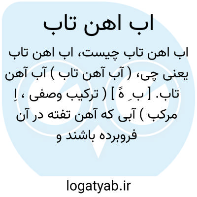 لغت نامه دهخدا ( آب آهن تاب ) آب آهن تاب. [ ب ِ هََ ] ( ترکیب وصفی، اِ مرکب ) آبی که آهن تفته در آن فروبرده باشند و در طب بکار است.