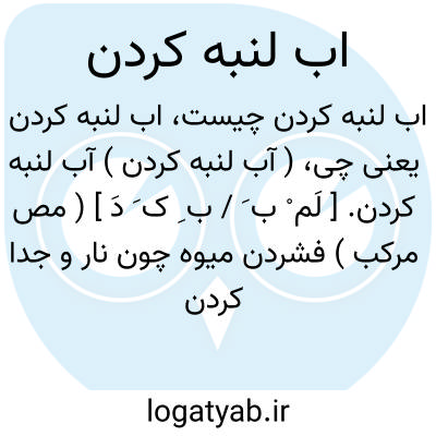 ( آب لنبه کردن ) آب لنبه کردن. [ لَم ْ ب َ / ب ِ ک َ دَ ] ( مص مرکب ) فشردن میوه چون نار و جدا کردن آب آن از دانه در پوست خود.