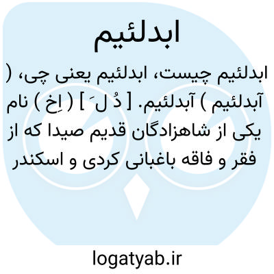 ( آبدلئیم ) آبدلئیم. [ دُ ل َ ] ( اِخ ) نام یکی از شاهزادگان قدیم صیدا که از فقر و فاقه باغبانی کردی و اسکندر در 332 ق.م. تاج و تخت پدران بدو بازداد.
