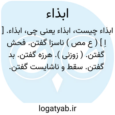 ابذاء. [ اِ ] ( ع مص ) ناسزا گفتن. فحش گفتن. ( زوزنی ). هرزه گفتن. بد گفتن. سقط و ناشایست گفتن.
