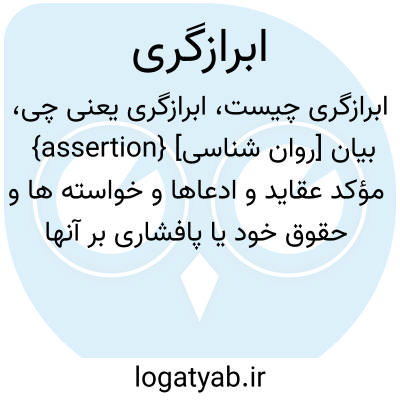 {assertion} [روان شناسی] بیان مؤکد عقاید و ادعاها و خواسته ها و حقوق خود یا پافشاری بر آنها