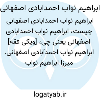 [ویکی فقه] ابراهیم نواب احمدآبادی اصفهانی. میرزا ابراهیم نواب احمدآبادی، از هنرمندان و نقاشان اصفهان در قرن چهاردهم هجری بوده است.