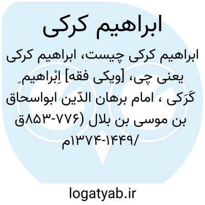 [ویکی فقه] ابراهیم کرکی (ابهام زدایی). ابراهیم کرکی ممکن است اشاره به اشخاص و شخصیت های ذیل باشد: • ابراهیم بن محمد حرفوشی عاملی کرکی اصفهانی، از فقها و محدّثین اصفهان در قرن یازدهم هجری• برهان الدین ابواسحاق ابراهیم بن موسی کرکی، ادیب، نحوی، محدّث، مورخ، مفسر، فقیه و قاضی و از عالمان بنام شافعی• ابوالوفاء برهان الدین ابراهیم بن عبدالرحمان کرکی، قاضی و فقیه حنفی و رجل سیاسی مصر