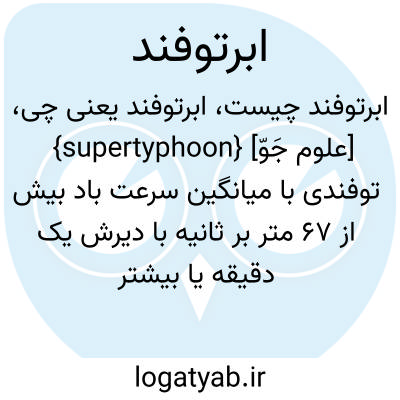{supertyphoon} [علوم جَوّ] توفندی با میانگین سرعت باد بیش از 67 متر بر ثانیه با دیرش یک دقیقه یا بیشتر