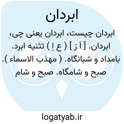 ابردان. [ اَ رَ ] ( ع اِ ) تثنیه ابرد. بامداد و شبانگاه. ( مهذب الاسماء ). صبح و شامگاه. صبح و شام و سایه آن دو: