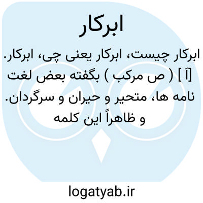 لغت نامه دهخدا ابرکار. [اَ ] ( ص مرکب ) بگفته بعض لغت نامه ها، متحیر و حیران و سرگردان. و ظاهراً این کلمه موضوع و مجعول است.