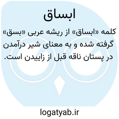 کلمه «ابساق» از ریشه عربی «بسق» گرفته شده و به معنای شیر درآمدن در پستان ناقه قبل از زاییدن است. این واژه معمولاً در متون دینی و تاریخی عربی برای اشاره به وضعیت خاصی از شتر ماده به کار رفته است که پیش از تولد شترک، شیر از پستانش جاری میشود.