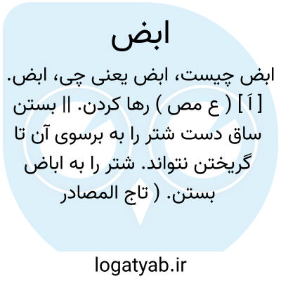 ابض. [ اَ ] ( ع مص ) رها کردن. || بستن ساق دست شتر را به برسوی آن تا گریختن نتواند. شتر را به اباض بستن. ( تاج المصادر بیهقی ). || آرمیدن. || جنبیدن. || زدن رگ اباض کسی را. درهم کشیده شدن رگ نَسا. با هم آمدن. ( تاج المصادر بیهقی ).